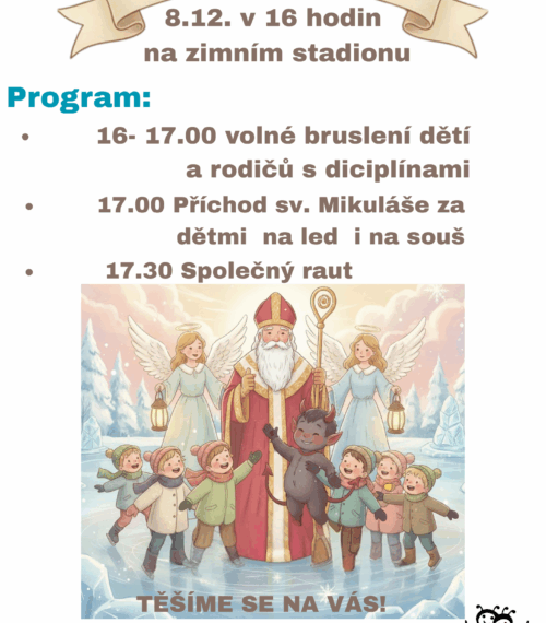 MILÍ RODIČE, V PONDĚLÍ 8.12. VÁS S DĚTMI SRDEČNĚ ZVEME NA MIKULÁŠE NA LEDĚ.